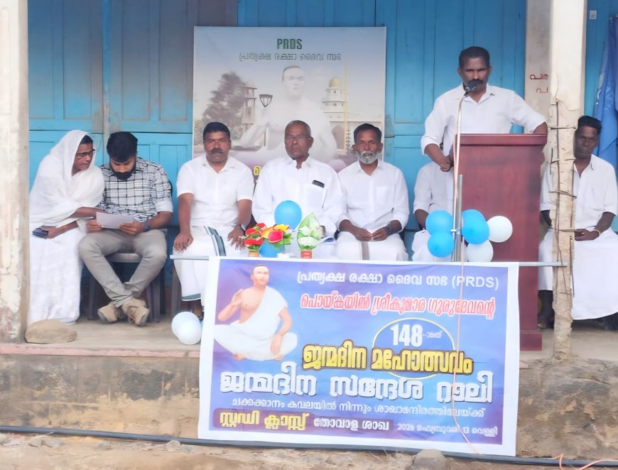 പ്രത്യക്ഷ രക്ഷാ ദൈവസഭയുടെ സ്ഥാപകനായ പൊയ്കയിൽ ശ്രീകുമാര ഗുരുദേവൻറെ 148-ാം ജന്മദിനത്തോടനുബന്ധിച്ച് പി.ആർ.ഡി.എസ് തോവള ശാഖയുടെ നേതൃത്വത്തിൽ ജന്മദിന സന്ദേശ റാലി സംഘടിപ്പിച്ചു.