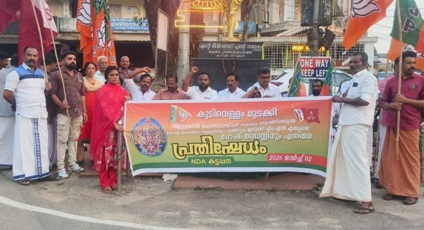 ചരിത്രപ്രസിദ്ധമായ ആറ്റുകാൽ പൊങ്കാല നടക്കുന്ന സാഹചര്യത്തിൽ തിരുവനന്തപുരം നഗരത്തിൽ കുടിവെള്ള ക്ഷാമം രൂക്ഷമാകുന്നതായി ആരോപിച്ച് റോഷി അഗസ്റ്റിൻെെരെയാണ് കട്ടപ്പനയിൽ എൻഡിഎ പ്രതിഷേധവും ധർണ്ണയും സംഘടിപ്പിച്ചത്.