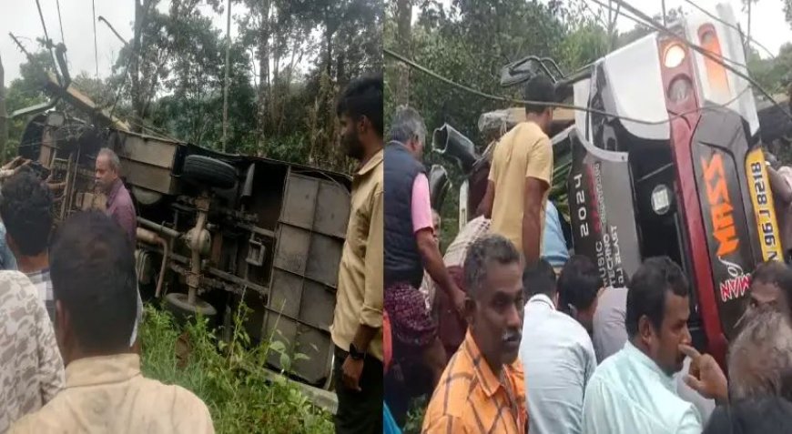 കൊടും വളവില് ബസ് നിയന്ത്രണം നഷ്ടപ്പെട്ട് മറിയുകയായിരുന്നു.തമിഴ്നാട് സ്വദേശികള് സഞ്ചരിച്ചിരുന്ന ബസ് ആണ് മറിഞ്ഞത്.