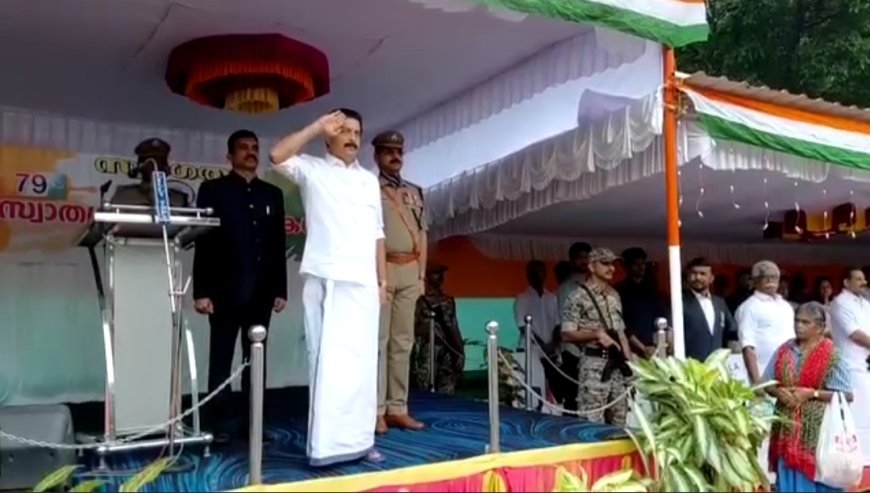 സ്വാതന്ത്ര്യ ദിനാഘോഷം : ഇടുക്കിയിൽ ജലവിഭവ വകുപ്പ് മന്ത്രി റോഷി അഗസ്റ്റിൻ പതാക ഉയര്ത്തി അഭിവാദ്യം സ്വീകരിച്ചു.